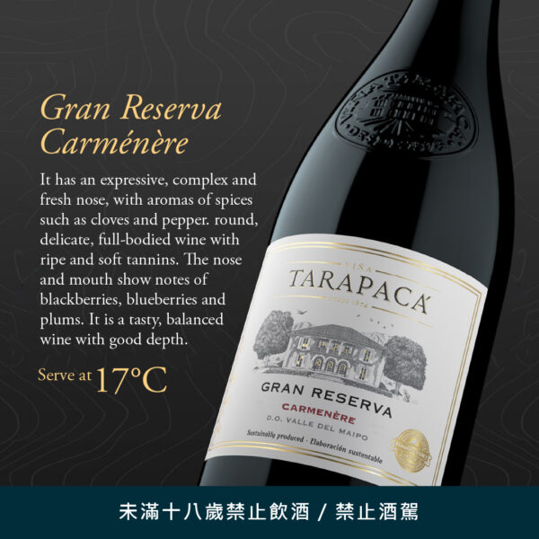 傳說中法國波爾多的六大葡萄品種,從失落到傳奇,佳美娜在智利獲得重生。深紅寶石色澤的佳美娜,綻放黑莓、煙燻與香料的層次,溫潤又充滿張力。植物的清新、成熟李子、黑莓和黑櫻桃的香氣,以及紫羅蘭的花香與香料氣息,優雅柔和的單寧,口感順滑,酒體平衡,尾韻悠長,令人愉悅。