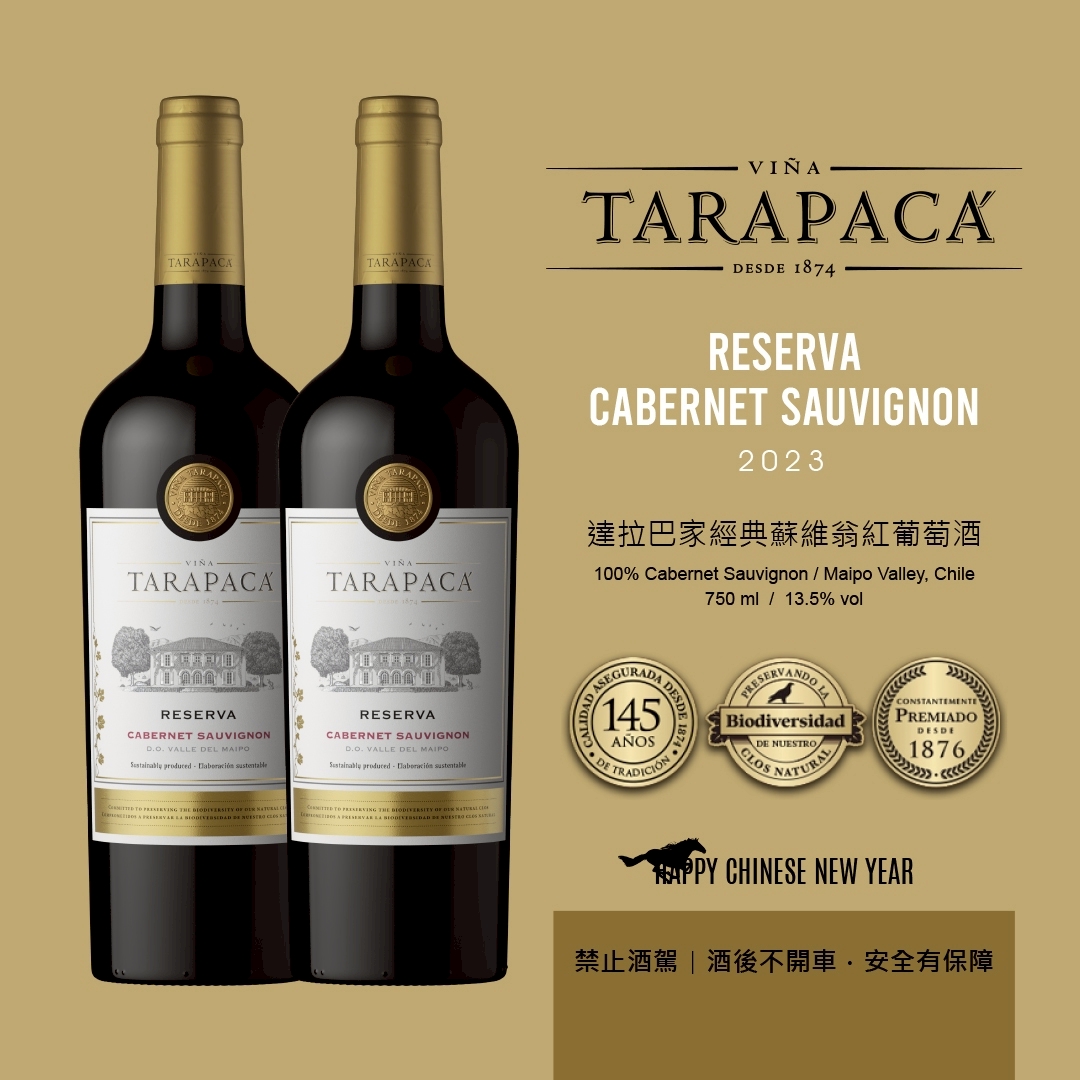 智利邁步山谷的獨特風土,體現在最具代表性的卡本內蘇維翁葡萄品種上,紅寶石的明亮色澤,香氣層次豐富,散發黑櫻桃、帶有黑加侖、黑李與肉豆蔻風味;法國橡木桶陳釀10個月,口感圓潤,結構完整,酸度平衡,單寧優雅,後韻悠長。