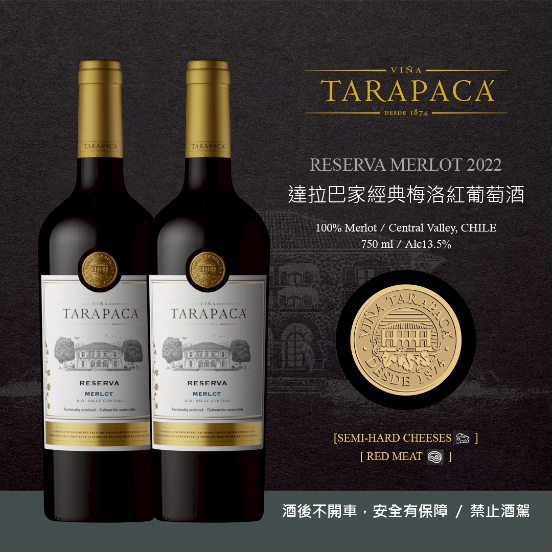 精緻柔和的TARAPACÁ Reserva Merlot,完美融合了成熟果香和優雅結構,並且承載著安第斯山脈邁步谷獨特的風土特質與大自然的饋贈。